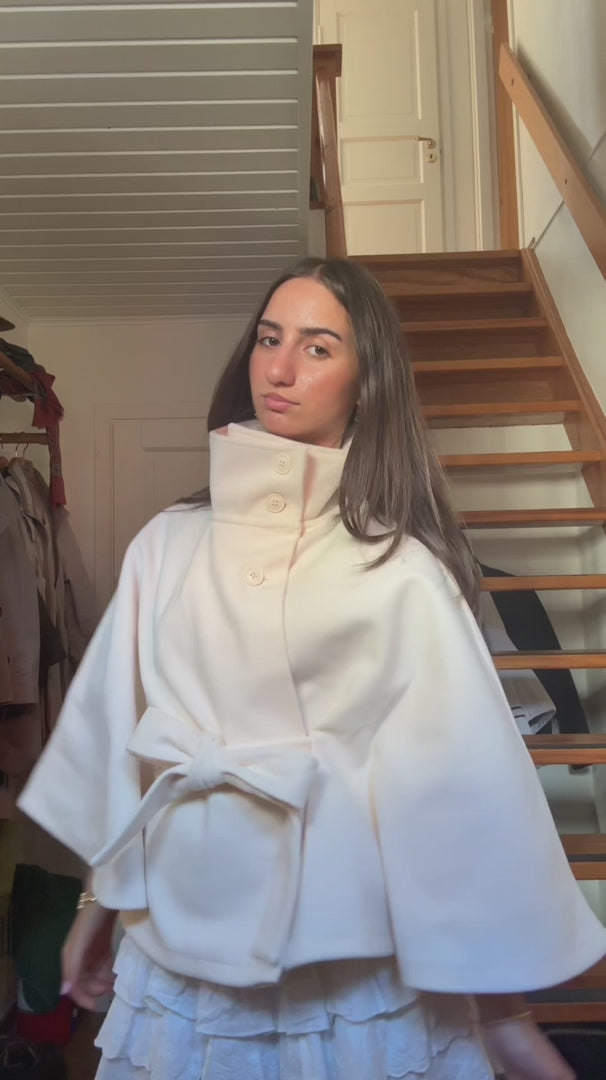 Solenne Cape Coat'un, gardıroplarındaki en kurtarıcı ve çok yönlü ceket olduğunu söyledi.